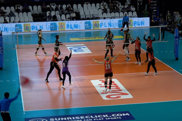 ANTARA – Tim putri Jakarta BIN menyamai jumlah kemenangan yang diperoleh tim Jakarta Popsivo Polwan, dalam lanjutan kompetisi bola voli Proliga Putri 2024 di GOR Ken Arok Kota Malang, Jumat (14/6) yakni 10 kemenangan dari 10 laga. Kedua tim juga sama-sama mengoleksi nilai 25, hingga membuka lebar peluang bagi keduanya masuk ke final four di Pontianak, Kalimantan Barat pada Juli mendatang.(Achmad Syaiful Afandi/Agha Yuninda Maulana/Ludmila Yusufin Diah Nastiti)