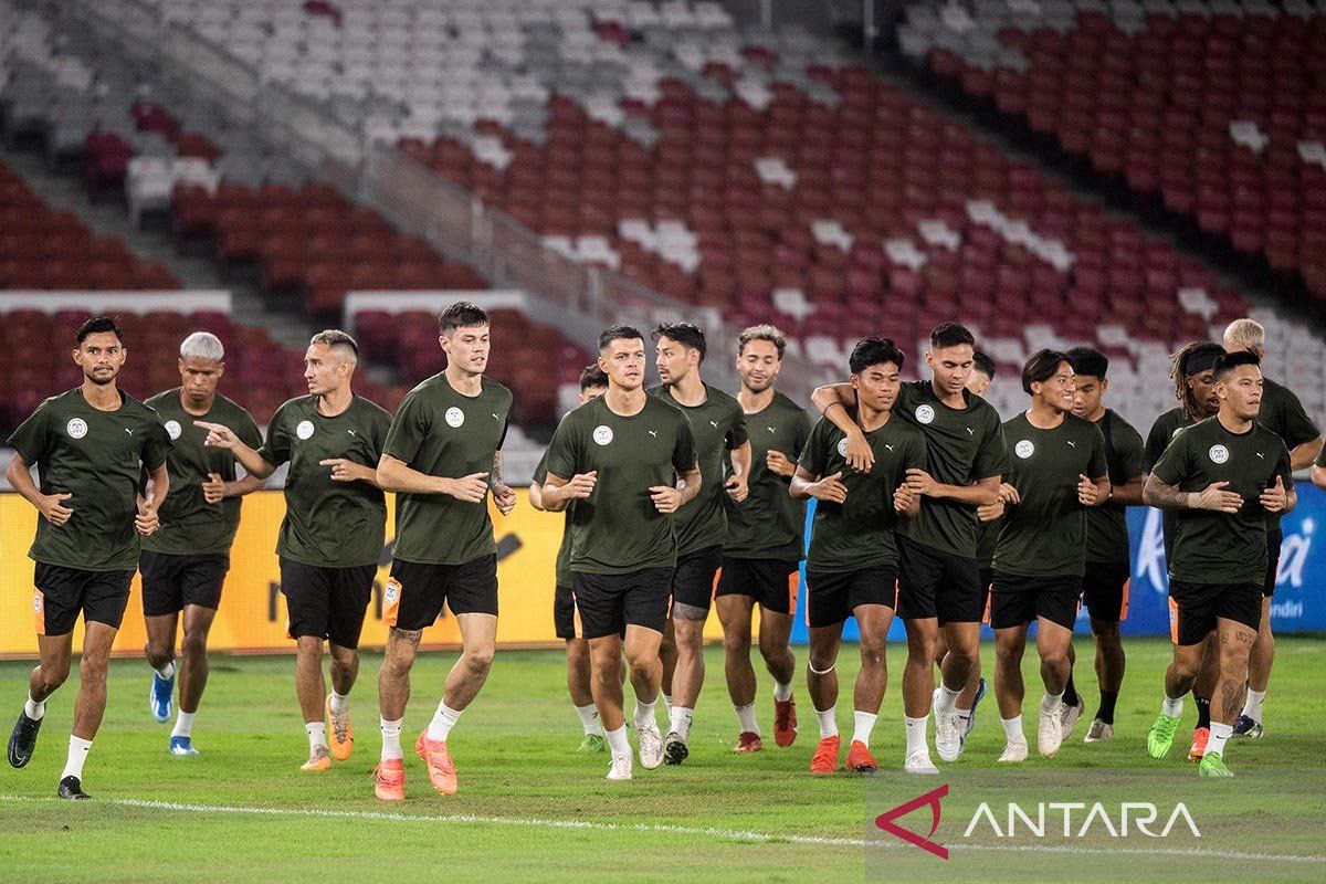 Pesepak bola Timnas Filipina mengikuti latihan resmi jelang pertandingan Kualifikasi Piala Dunia 2026 di Stadion Utama Gelora Bung Karno (SUGBK), Jakarta, Senin (10/6/2024). Timnas Filipina akan melawan Timnas Indonesia pada pertandingan ke-6 Grup F Kualifikasi Piala Dunia 2026, Selasa (11/6) di Stadion Utama Gelora Bung Karno (SUGBK). ANTARA FOTO/Rivan Awal Lingga/Spt.