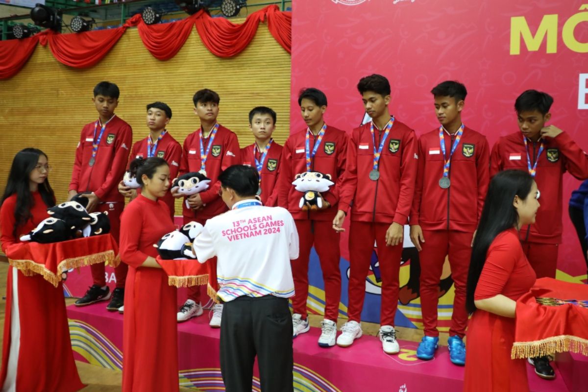 Tim bulu tangkis beregu putra Indonesia meraih medali perak di ASEAN Schools Games (ASG) 2024 di Tien Son Sports Complex, Da Nang, Vietnam.